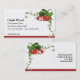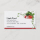 This gardener's business card design has tomato, bell pepper, cucumber and onions displayed on front and back with a line of the red colour out of the onion at the bottom.