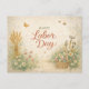 Perfect for gardeners, this gentle Labor Day design celebrates the beauty of patient, hands-on work through a soft garden-inspired illustration. Set on a lightly textured parchment background, the message “Happy Labor Day” appears in graceful script, surrounded by blooming daisies, clover, and wildflowers. A woven basket filled with blossoms and garden tools, tied wheat sheaves, and drifting bees and butterflies symbolize care, perseverance, and the quiet rewards of labor. The muted colors and pastoral details create a peaceful, heartfelt mood that honors everyday effort with warmth and grace.
