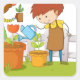 Gardeners planting tree and flower in garden square sticker