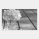 black and white photo of gardenias in a mason jar on silver tray