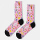 Cute pink socks patterned with tools and icons used by gardeners, landscapers, botanists and horticulturists alike.