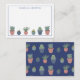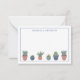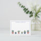 This personalised stationery note card features a painted design of succulents and cacti in colourful pots. It has a clean white writing area with a blue border and a patterned back. The style is simple, chic, and perfect for a gardener or as a thank you note.