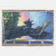 Gargoyle Guardian Art by Traci Van Wagoner prints, posters, accessories, and gifts features a blue and grey stone gargoyle looking back at you from his perch high above the city in the early morning with a textured sunrise sky of yellow, orange, pink, violet and blue. Get yourself a gargoyle guardian today to keep a watch out for you.