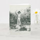 Garlene Tindall standing on a trick horse. Card