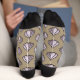 Rough sketch of garlic bulb. Seamless pattern. Custom background colour. Custom top stripe colour. Custom text on each sock.