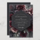 Experience a darkly romantic atmosphere with this moody and dramatic design. A lush arrangement of deep garnet and dusty rose blooms unfurls against a somber charcoal background. The painterly quality of the dahlias and roses creates a sense of opulent, twilight elegance. This botanical is perfect for an autumn affair with a touch of Victorian allure.