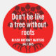 Modern, stylish BLACK HISTORY MONTH Stickers, designed with a motif of a tree silhouette in the background, and text which reads DON'T BE LIKE A TREE WITHOUT ROOTS. This is based on a Marcus Garvey inspirational quote. Underneath the message reads BLACK HISTORY MATTERS 24.7.365, so that Black History is not limited to a month in the year.
