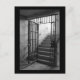 Rusted metal bars guarding a stairway in an abandoned prison.