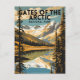 Gates of the Arctic National Park Postcard Design. Gates of the Arctic National Park in Alaska is a vast wilderness area chraacterised by rugged mountains, pristine rivers, and untouched landscapes. Known for its remote location and lack of developed trails, it offers exceptional opportunities for backcountry hiking, wildlife viewing, and experiencing the tranquillity of the Alaskan wilderness.