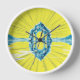 A beautiful digital picture shows a mountain-like shape with a shining entrance, reflected perfectly in peaceful water. The bright yellow background makes the scene glow with warmth.