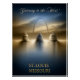 Three steamboats float symmetrically on a calm river, reflecting the iconic St. Louis Arch in the background. The scene is serene, with a gradient of blue transitioning to a golden sky.