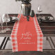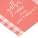 Create a cosy and inviting atmosphere for your holiday gatherings with this Gather Coral Buffalo Check Fall Thanksgiving Table Runner. Featuring a stylish buffalo plaid design with the word "Gather" and customisable family name, this table runner is perfect for adding a personalised touch to your fall and Thanksgiving decor. Ideal for family dinners and festive celebrations, it brings a warm and welcoming vibe to your table setting.