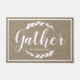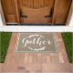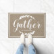 Rustic farmhouse doormat for a family farm! Crisp white laurel silhouettes surround the word "Gather" in elegant script on a faux burlap background! This doormat would also make a great gift for newly weds or new home owners!