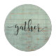 Adorable country green faux wood cutting board with the script of “gather” hand written on this country cutting board.