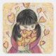 Gathering Love Hearts Artwork features a girl holding a bouquet of hearts. Golden hearts swirl around her. Art is a reminder to receive love and how it can sustain us. Inspirational artwork by Laurel Latto for DonnaBellas Angels.