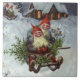 Jenny Nystrom created the image of the tomten or mischievous spirits and gnomes who protected the Swedish farmstead and buildings. They also represented Father Christmas who delivered children’s presents on Christmas eve. This image depicts 2 gnomes sliding down a hill on a sled loaded with pine boughs.