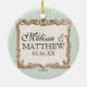 COLOR PALETTE: mint green, grey, white, and gold metallic look (faux) DESIGN COLLECTION: This is a matching Wedding Ornament to match the wedding invitation set of the same name. This set was inspired by the glamourous era of old Hollywood, taking its cues from Premier Posters and Glam gala events. Borrowing the stylish vintage yet modern typography font layouts that are trendy in today's wedding styles and adding a hand created, decorative lace inset with a raised look, golden curving swirl border, and swirls and a swirl decorative ornament. This invitation set can be done in any colour, just message us!