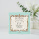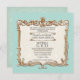COLOR PALETTE: azure aqua blue, cream and faux gold metal look. DESIGN COLLECTION: This is a matching Wedding Invitation. This is a Wedding Invitation Set which includes most any item you might need to coordinate your weddings decor. Using original vintage antique Art Deco and Art Nouveau stylised floral line art, Audrey Jeanne Roberts has graphically designed this glamourous gold leaf look, dimensional appearing lavish golden "carved" border with curling leaves, swirling around the border with great flourish. The scroll work is elegant and sleek. There are also printer's ornament typography dividers. Underneath the frame is a soft, lace background design pattern in cream. This look is perfect for an Old Hollywood, elegant, sophisticate glam event. Easy to customise your text using the template fields provided.