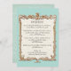 COLOR PALETTE: azure aqua blue, cream and faux gold metal look. DESIGN COLLECTION: This is a matching Dinner Menu to match the wedding invitation set of the same name. This is a Wedding Invitation Set which includes most any item you might need to coordinate your weddings decor. Using original vintage antique Art Deco and Art Nouveau stylised floral line art, Audrey Jeanne Roberts has graphically designed this glamourous gold leaf look, dimensional appearing lavish golden "carved" border with curling leaves, swirling around the border with great flourish. The scroll work is elegant and sleek. There are also printer's ornament typography dividers. Underneath the frame is a soft, lace background design pattern in cream. This look is perfect for an Old Hollywood, elegant, sophisticate glam event. Easy to customise your text using the template fields provided.