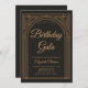 A roaring good fun awaits with this elegant birthday gala party invitation with a roaring 20s theme, featuring a deco frame and elegant calligraphy. A perfect birthday party invitation template for a Great Gatsby theme, in antique gold and black. Whether for a 40th, 50th, 60th, 70th or 80th birthday party, or for a roaring twenties, this vintage art deco nouveau frame in faux gold theme (digital effect) will shine bright. A roaring 20s speakeasy theme party for a doll of any age. Also suitable for a business or corporate gala event.