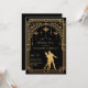A roaring good fun awaits with this elegant birthday soiree party invitation with a roaring 20s theme, featuring a deco arch frame and the silhouette of an elegant woman dancing with her partner. A perfect Gatsby party invitation template for a Great Gatsby theme. Whether for a 40th, 50th, 60th, 70th or 80th birthday party, or for a roaring twenties, this vintage art deco nouveau frame with chandeliers details, with a gold foil overlay effect (this is a digital effect, not real foil!) will shine bright. A roaring twenties speakeasy theme party for a doll of any age. Also suitable for a business or corporate gala event.