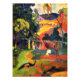 Gauguin Landscape with Peacocks photo print. Oil painting on canvas from 1892. Paul Gauguin is most recognised for his famous paintings of Tahiti. Matamoe, Or Landscape with Peacocks is one of his most beloved works. Peacocks walk in the foreground as a Tahitian man chops wood by a fire. A hut stands in the background with two women talking below palm trees as the sunset turns the landscape orange, purple, red and yellow. A great gift for fans of Paul Gauguin, peacocks, Tahiti, post-impressionism, and tropical art.