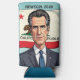 Gavin Newsom for President in 2028. Red, white and blue patriotic political can cooler with a cartoon caricature of Gavin.