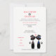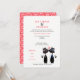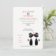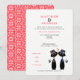 Fabulous wedding invitations stylish yet fun design with cute lucky black cats dressed as the two gay grooms; on the reverse is a red and white pretty flowery lace pattern, very elegant.