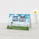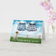 A pair of swim trunks hand from a clothesline in a backyard environment with green grass and a cute Jack Russell Terrier dog on this fun gay thinking of you greeting card.