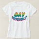 Fun shirt with "GAY friendly" text in rainbow colours.