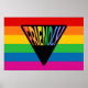 This gay pride supporter design features the rainbow text "friendly" in a triangle.