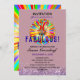 Retro "50 and Fabulous!" or any age customisable bright and cheerfully festive fiftieth birthday invitation. With a bold rainbow starburst logo on the front and back and purple glitter on a mauve background on the front.