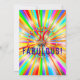 Retro "50 and Fabulous!" or any age customisable bright and cheerfully festive fiftieth birthday invitation. With a bold rainbow starburst logo on the front and back. Purple glitter on the front. This is a great invitation for LGBTQ / gay and lesbian pride / diversity / trans / inclusive multicultural birthday celebrations.