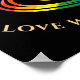 Gay LGBTQ Have Pride Month Love Who You Want on Black with multiple hearts and a Rainbow Flag pattern. It informs everyone to, "Have Pride Love Who You Want." Love is Love