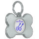 This awesome pet tag is designed for gay men. It features two blue male symbols standing side by side. The background is white and there is customisable blue text inside each of the symbols to put names.There is more custom text above the figures that reads "this doggie has two Daddies"