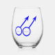 This awesome stemless wine glass is designed for gay men. It features two blue male symbols standing side by side. There is customisable blue text inside each of the symbols to put names.