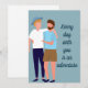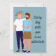 This LGBT greeting card features two gay men in love. One man in the couple is blonde wearing a hat and the other male is brunette with a beard. The front of this sweet LGBTQ wedding anniversary card reads "every day with you is an adventure." Customise this romantic quote or keep as is.