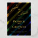 Announce your wedding date with luxurious gold foil elegance. This gay wedding save the date card features bold diagonal rainbow stripes on sophisticated black with stunning gold foil script typography. The premium foil finish adds shimmer and sophistication to your wedding announcement. Perfect for couples seeking unique, personalized wedding stationery that makes an unforgettable first impression. Customize with your names, wedding date, and venue details. Ideal for contemporary gay men weddings and LGBTQ celebrations. Part of our complete Gay Men Wedding Collection.