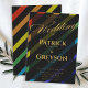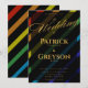 This stunning gay men wedding invitation features elegant rainbow stripes flowing diagonally across sophisticated black with luxurious gold script typography. Bold, masculine, and impossible to ignore—this design commands attention while celebrating love beautifully. Perfect for invitations, save the dates, and thank you cards. Fully personalized with your names, wedding date, and details. Stand out with a design as unique as your love story.