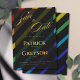 Announce your wedding date with this elegant gay wedding save the date card. Bold diagonal rainbow stripes on sophisticated black create a modern, masculine design with luxurious gold script typography. Perfect for couples seeking unique, personalized wedding stationery that makes a memorable first impression. Customize with your names, wedding date, and venue details. Features premium design elements ideal for contemporary same-sex weddings and LGBTQ celebrations. Part of our complete Gay Men Wedding Collection including invitations, RSVP cards, and thank you notes.