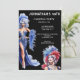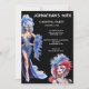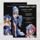 A tall, vivacious man dressed in drag is wearing a stunning low cut sparkling blue dress and feather headband. He is wearing a large volume silver grey wig and long dangling rhinestone earings with a diamante bracelet. Both hands are placed on his hips. A second drag queen appears at the bottom right corner wearing a red and blue feather hat. Editable white text templates appear to his right, against a black background, and may be customised to suit your festive celebration. The back has a third homosexual man and an extra text for other information you may need your guests to know. Simply delete wording if not required. This luxurious, elegant and upmarket watercolor ai design is ideal for a festival, carnival, drag queen, lgbtq, gay or circus celebration whether it be a retirement, birthday, halloween or a sit down dinner party. This is suited to adults