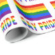 The Gay Pride Rainbow Flag with stripes of red, orange, yellow, green, blue, and violet, shows here with the words GAY PRIDE underneath, in the colours of the flag. Share your pride with this gift wrapping paper.