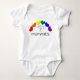 Dress a special pride baby of 2 lgbt + / gay / lesbian moms in the most darling bodysuit featuring a colourful rainbow of hearts representing the six lgbt rainbow pride flag colours, and the quote, "I love my 2 mommies." This attention-grabbing little clothing item makes a great baby clothes gift anytime or for a baby shower for a "two moms" couple.