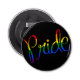 This awesome PRIDE bottle opener is in a modern script font in the colours of the gay pride flag on black. It will come in so handy when needing to open soda pop or beer bottles. Get a couple to have on a bar for a party or as favours for guests.