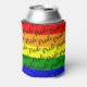 This colourful can cooler is wrapped in the rainbow colours of the Gay Flag. The top layer of this design features the word Pride in a repeating pattern.
