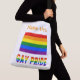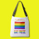 Gay Pride Rainbow Flag with the words GAY PRIDE below in rainbow letters. Above is a place for a name in orange text to create a personalised look. Or, add someone else's name for a special gift. Great for a gift for travelers, as well as celebrating LGBTQ culture. Design shows on front and back of crossbody bag.