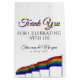 This gift bag is designed to coordinate with our Gay Pride Rainbow Wedding Suite. It features rainbow text and an image of a row of gay pride rainbow flags. The text reads Thank You for Celebrating with Us! The couple's name and wedding date are fully customisable. Great for filling with wedding swag to thank attendants, family members, special guests, or members of your wedding party.