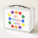 This awesome metal lunchbox features a graphic image of a selection of rainbow coloured shamrocks encircling a rainbow coloured message that says "Gay Proud Irish". The design is for all LGBT Irish people who love their Irish roots and are proud to be Gay.