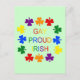 This postcard features a graphic image of a selection of rainbow coloured shamrocks encircling a rainbow coloured message that says "Gay Proud Irish". The design is for all LGBT Irish people who love their Irish roots and are proud to be Gay.