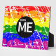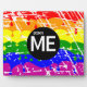 A gay rights / gay pride design. The rainbow, LGBT (Lesbian, Gay, Bisexual, Transgender) flag drawn in dripping paint. This has a distressed look. On top of this is a roundel / badge which says Born ME.